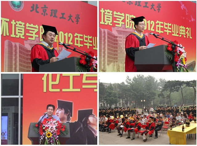 毕业季的第四个环节——化工与环境学院毕业典礼暨香槟酒会,是毕业生们最为关注的。6月19日,化工与环境学院2012届毕业生毕业典礼暨香槟酒会在中心教学楼前广场隆重举行。院长孙克宁,院党委书记张振华,副院长陈实、李加荣、冯金生和博士生导师代表、毕业班班主任、部分学生家长以及全体毕业生参加了典礼。典礼由院分党委副书记、副院长张春程主持。