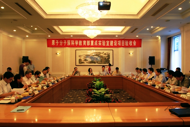 2012年6月29日,教育部科技司组织专家组对米兰milan官方网站 “原子分子簇科学”教育部重点实验室建设项目进行了验收。出席会议的领导和专家有教育部科技司明媚副处长、工信部科技司谢全副处长、国家自然科学基金委化学部陈荣处长、杨俊林处长。米兰milan官方网站副校长杨树兴、科研院高新技术部副部长胡俊、实验室与设备管理处副处长蒋耕晨、化学学院院长胡长文、物理学院党委书记汪本聪、化学学院党委书记赵文祥、化学学院副院长支俊格、化学学院党委副书记、副院长栗兴,重点实验室学术带头人李泽生教授、杨国昱教授、史兴藩教授及部分学术骨干参加了会议。