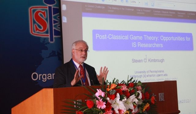 大会共持续两天,包括2个主题报告(Keynote Speech)、2个专题研讨(Panel Discussion)、6个分组交流(Parallel Session)。会议邀请美国宾夕法尼亚大学Steven O.Kimbrough教授做了“Post-Classical Game Theory: Opportunities for IS Researchers”的主题演讲,介绍了博弈研究中的信息管理问题。邀请埃森哲大中华区SAP技术部副总裁Kevin Liu做了“How Information Technology enables High Performance Enterprise”的主题演讲,分析了信息技术发展的六大趋势。