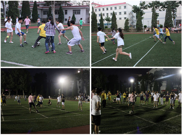 晚餐后,身着红色队服的干训1至5组代表队和身着蓝色队服的干训6至10组代表队进行了一场足球友谊赛。足球友谊赛由趣味足球赛和常规五人制足球赛两部分组成。