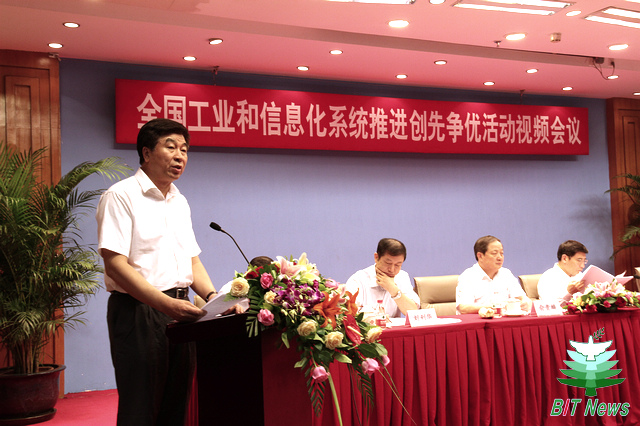 党委书记郭大成代表学校在全国工业和信息化系统推进创先争优活动视频会议上作经验介绍
