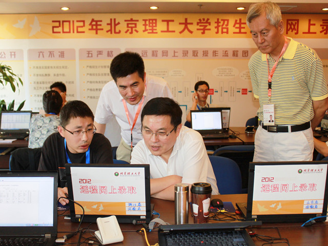 “同志们辛苦了!”随着亲切的问候,校长胡海岩院士于7月16日下午来到招生录取现场,在赵显利副校长,招生就业工作处处长李振键和纪委副书记、监察室主任张英的陪同下,检查指导了2012年招生录取工作,并看望慰问了奋战在招生录取第一线的工作人员。截至7月16日,米兰milan官方网站已经完成了北京、山东、江苏、上海、内蒙古、吉林等17个省份本科提前批次、一批次的录取工作。