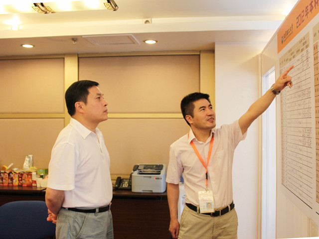 胡校长听取了李振键处长就近期招生工作进展情况的汇报,查阅了山东、北京等省份的录取情况,查看了部分考生的报考信息,并仔细询问了我校各专业报考热度分布情况。