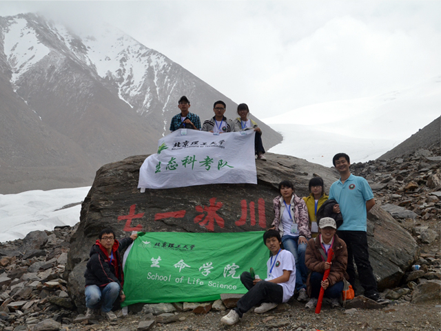 2012年7月22日,生命学院生态科考社会实践团按照计划,从嘉峪关市出发来到了位于祁连山深处的七一冰川。在这里以土壤,水源,生态环境以及景区的管理情况为考察重点,通过实地采样,问卷发放,问询工作人员等实验方法,为科考队员的相关课题提供必要的样本与数据支持。在考察过程中,队员们团结协作,互帮互助,圆满完成了计划的科考任务,并且成功抵达海拔4千多米的冰川边缘。