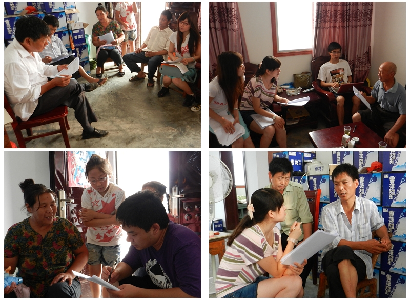 在座谈的同时,实践团在村干部配合下组织村民填写调查问卷。但因贫困村教育条件有限,大部分村民甚至没有达到小学文化水平,无法阅读填写问卷,实践团成员为村民一一解答问卷中各问题并帮助村民填写,保证了问卷调研的顺利开展。