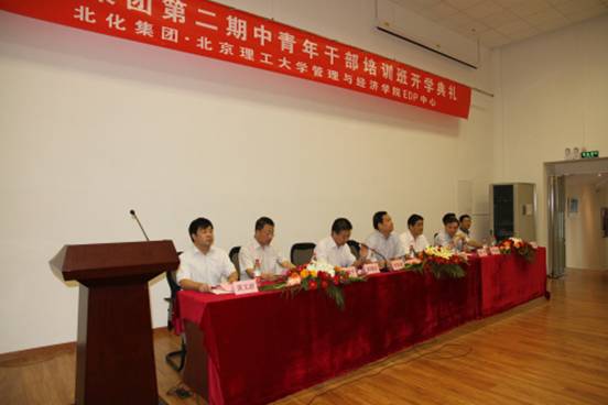 2012年8月15日,中国兵器北化集团第二期中青年干部培训班在米兰milan官方网站管理与经济学院举行了开班典礼。米兰milan官方网站副校长赵显利、北化集团董事长、党委书记李春建、米兰管理与经济学院院长魏一鸣、学院党委书记李金林、副院长董沛武等领导出席了开班典礼。北化集团商继红副书记出席并主持了开班典礼。