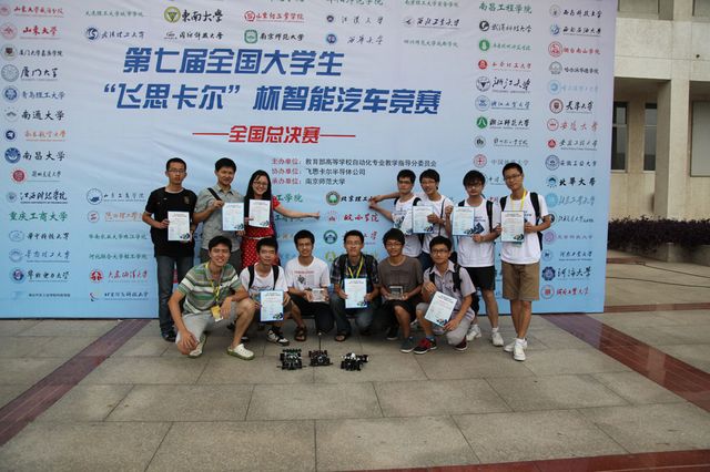 2012年8月下旬,第七届全国大学生“飞思卡尔”杯智能车竞赛全国总决赛在被誉为“东方最美校园”的南京师范大学举行。我校智能车俱乐部的两支队伍分别参与了光电组和摄像头组竞速赛的角逐,经过两天的激烈比赛,我校队伍再创佳绩,分别获得了光电组一等奖和摄像头组一等奖的历史最好成绩,实现了这两个组别全国一等奖零的突破,为学校增添了荣誉。