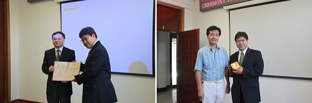 2012年9月5日下午,日本京都大学多多纳裕一(Hirokazu Tatano)教授兼职教授聘任仪式在管理与经济学院举行。管理与经济学院院长魏一鸣教授,分党委书记李金林教授,副院长王兆华教授,教师代表唐葆君副教授、张跃军副教授、王科博士等以及部分研究生代表,参加了聘任仪式。管理与经济学院副院长王兆华教授主持了聘任仪式。