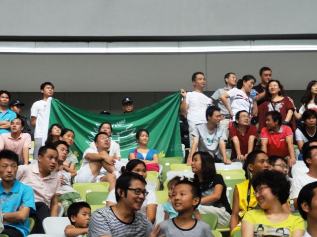 管理与经济学院80级校友刘仕华整场比赛过程中一直高举校旗。