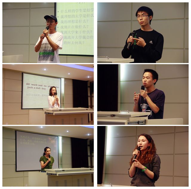 报告团成员分别是来自11级生物医学的阿提古丽、11级热能与动力工程的迪丽娜孜、11级化工与制药工程的阿依努尔、09级电气工程及自动化的简剑、10级生物医学的周永康、09级化学的邱发东。在报告中,几位同学围绕人生规划、时间管理、学习方法、日常生活等中心话题展开,帮助刚踏入预科生活的学弟学妹们探索合适的学习方法,确立人生目标,并激励他们为之不懈奋斗。每一位同学都通过自己的切身经历为预科同学讲述他们的奋斗经历,如何从一个默默无闻的少数民族学生,成长为一个优秀的大学生。他们均强调“积极面对人生,乐观向上,无论在预科还是在目标大学都要明确目标,制定学习计划并要坚持学习计划”。报告会不时响起热烈的掌声,在场学生在不时思考自己接下来的预科生活如何度过的同时,也被学长、学姐们的优秀事迹所感染。