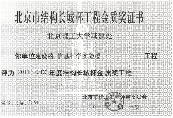 米兰信息科学实验楼工程喜获“2011-2012年度结构长城杯金质奖”工程