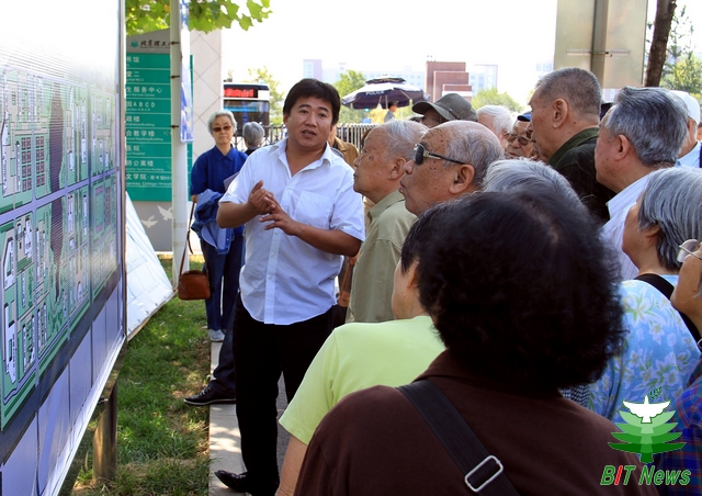 良乡校区管理处处长徐承俊、副处长赵小贺向离休干部们介绍了良乡校区的建设发展情况,并陪同游览了校园景观。