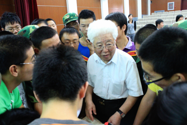 讲座结束时,周立伟院士拿出自己学生时代的笔记本给在场的同学们观看,一丝不苟的记录和演算让同学们为之震撼。将近两个小时的讲座,80岁的周立伟院士始终饱含严谨负责的态度和对青年学生的殷切关爱,让在场同学近距离感受了老一辈科学家的风采。
