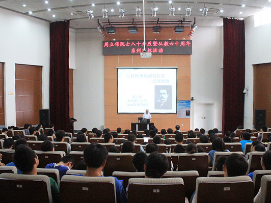 作为基础教育学院名誉院长、中国工程院院士周立伟八十寿辰暨从教六十年系列活动之一, 9月20日下午,周立伟院士为300余名基础教育学院师生做了题为“大自然奥秘的窥探者——爱因斯坦”的专题讲座。基础教育学院党委书记王悦音、常务副院长张青山、副院长程杞元等领导和老师出席活动,团委书记肖坤主持了本次活动。