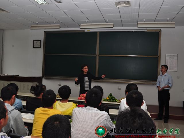 2012年9月25日,在中秋节和国庆节即将来临之际,机电学院院长焦清介教授、党委书记栗苹教授及学院下设无人飞航系、能源与动力工程系、安全工程系、力学工程系、机电系统工程系、探测与控制工程系、智能机器人研究所系领导、院办、学院团委和2012级新生全体班主任在良乡校区理科教学楼慰问了机电学院2012级全体新生,并带去了月饼和水果等慰问品。基础教育学院副院长程杞元、机械与运载学部领导及辅导员等参加了慰问会。