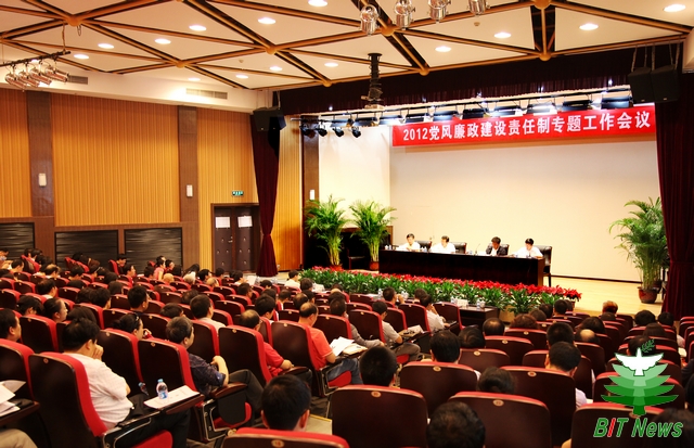 9月26日,学校在七号楼一层报告厅召开了党风廉政建设责任制专题工作会。中央纪委驻工业和信息化部纪检组副组长、监察局局长黄文玉、中央纪委驻工业和信息化部纪检组监察局二室主任刘林出席了会议,全体校领导、副处级以上干部、离退休干部代表、民主党派人士代表和教师代表共计200余人参加了会议,会议由校长胡海岩主持。