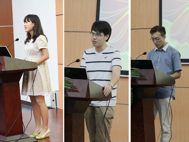 院领导发表讲话之后,由学生代表发言。2012级吴蓓同学代表2012级新生表达了对数学学院领导老师关心关爱学生的感谢以及大学四年的美好的期待和展望;2011级毛舒凡同学和大家分享了自己大学一年来的感受,希望新生们准备好迎新许多新的挑战和机遇;2009级以专业第一保到中科院的杜冠德同学则以学长的身份传授了大学学习方面的经验并鼓励同学们树立远大志向,重视并努力学习。
