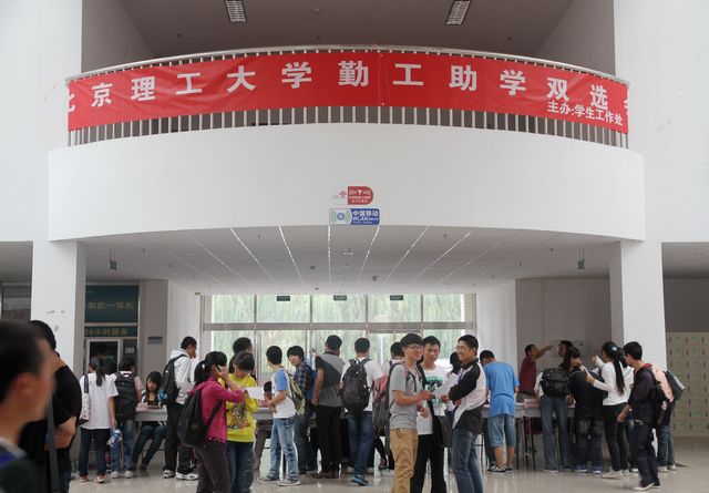 9月25日中午12点,在基础教育学院的协助下,2012-2013学年第一学期勤工助学双选会在良乡校区学生服务中心一层大厅举行。共有十几个单位提供包括办公室助理、网络维护员、学生联络员、平面设计员等500多人的岗位需求。9月26日中午12点,共有40个单位在中关村校区中心教学楼西侧为学生提供了450人的岗位需求