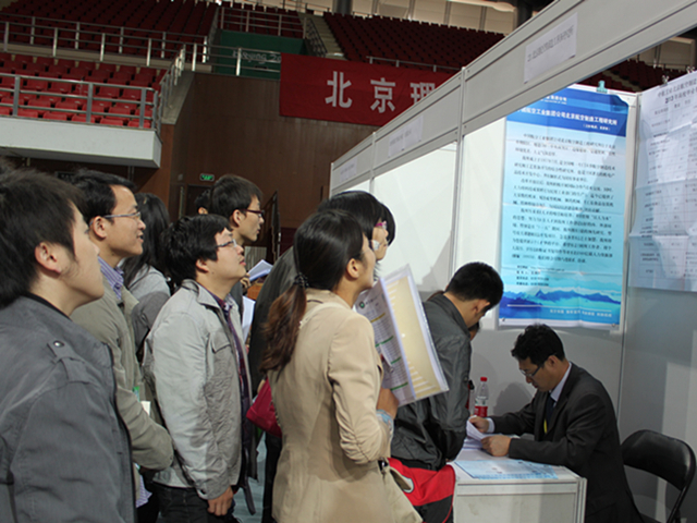 这是我校针对2013届毕业生举办的第3场大中型招聘会。在此之前,我校还举办了北汽集团、中国兵器装备集团及其下属企业的专场招聘会。招聘会于下午14点圆满结束,当天共有45名同学与单位达成就业意向,由于刚刚进入招聘旺季,大部分同学仍处在观望选择之中。