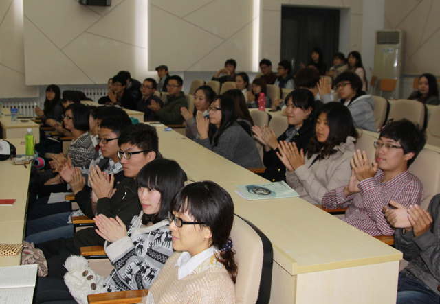 随后,乔教授结合自己的实践个案讲述了自己在挪威现代剧《寻找娜拉》、芬兰英雄史诗《卡莱瓦拉》、瑞士《阿彭策尔史诗》话剧舞台设计中的剪纸创作,从文化遗产的价值、人类文化遗产的对话、交流与融合等方面进行了解读,给出了“文化遗产与设计的结合是必然趋势”、“文明的交流:比沟通更重要的是结合”这样的创作认识。随后,乔教授还对学生们提出的问题一一作了解答。他精彩的讲解迎来了同学们的热烈掌声。