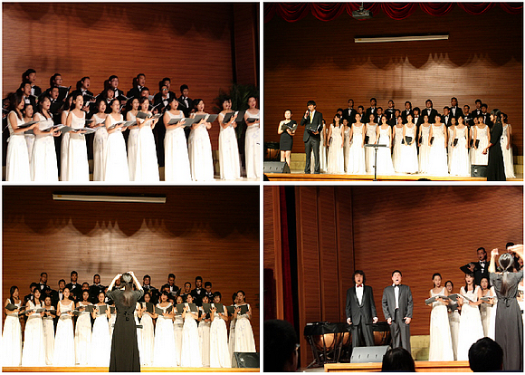 在“秋之韵”室内音乐会和“北湖放歌”演唱会中,合唱团的同学们演唱了混声小合唱《美丽的草原我的家》,重唱与小合唱曲目《共和国恋曲》、《海港之夜》、《天山牧民把歌唱》,混声大合唱曲目《We rise again》、《闪亮的日子》等。音乐会上还再次演绎了全国大学生艺术展演的获奖曲目,以及6月份在国家大剧院演出的歌剧选段。整场音乐会形式丰富,曲目精彩,赢得了观众热烈的掌声。