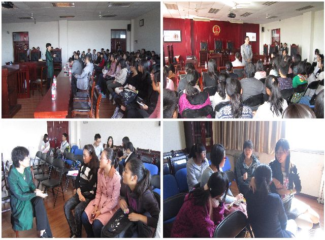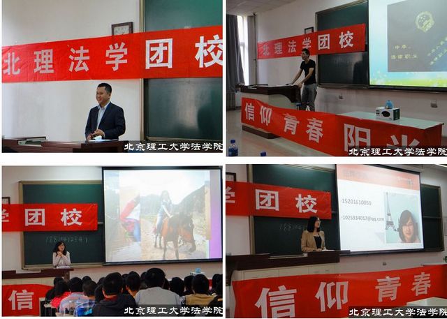 党委宣传部副部长王征、法学院副院长张艳丽、法学院副书记副院长张巍、专业教师李金明、王国语、龚向前、团委书记聂宁宁、团委副书记韩笑分别参加了相关活动,党委宣传部副部长王征为法学院新生做了长达三个小时的大学生涯规划精彩报告。