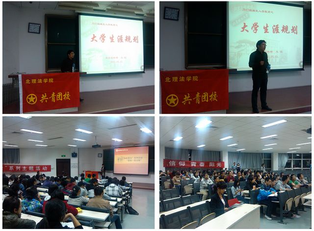 成长之路精彩纷呈,青春故事别样多彩。2012年10月12日,米兰milan官方网站法学院新生入学教育 “如此爱法”系列活动之“借我一双法眼”青春榜样报告会,在良乡校区理科教学楼102成功举办。首先,上台与大家分享成长故事的是现为光电学院辅导员的汤琪。汤琪曾任法学院学生会主席,他以幽默的表达方式结合自身经历告诉同学们参与学生工作的重要性以及如何充实大学生活。第二位讲述者是全国大学生自强之星吴拉尔斯•哈列汉。从毫无英语基础、普通话水平差到大二过四级、顺利通过司法考试,并最终以优异的成绩保研。大学四年,他实现了奇迹般的蜕变。他为同学们带来了“因感恩而努力”的报告,用自己的经历告诉大家要感恩和努力学习。
