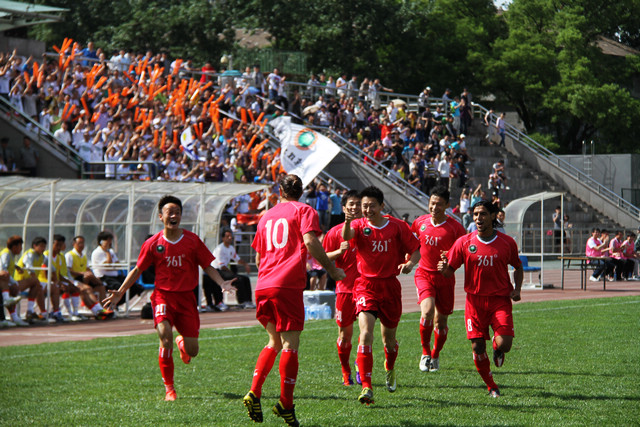 这场比赛,胜利者在享受冠军的喜悦,失败者也绝不沮丧甚至有些欢乐——因为竞争对手同时失利,米兰也提前完成了赛季保级。这支球队的创办者,和徐根宝齐名的足坛名宿金志扬坐在场边百感交集,“我们走了一条完全不同的道路,虽然没有徐指导这样的成绩,我今年也正式退休了,但这条路还是必须坚持下去!”他对着看台一隅挥手致意,那里几个专程赶来的北京球迷打出了一面横幅:“中国足球,感谢根宝和金指的坚守”!