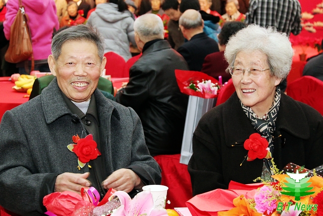 大学是先进文化的产生地,同时也是继承和发扬传统文化的前沿,金婚庆典活动进一步丰富了我校大学文化的内涵。古语云“家和万事兴”,家庭和谐是社会发展、进步的基石,也是社会和谐的重要内容,而金婚诠释了家庭和谐的真意。我校离退休教职工金婚庆典活动已经走过了十余个春秋,见证了近500对伉俪的金婚幸福,仅今年就有78对夫妇喜迎金婚,创历年之最。在本次金婚庆典活动中,校离退休工作领导小组成员单位、金婚伉俪原所在单位、后勤集团、校团委等单位给予了大力支持,“北理同心党建工作室”的保安员们和法学院、机电学院的学生志愿者们共同为庆典活动提供了热情、周到的服务,展示出我校师生尊老、敬老、爱老、助老的和谐氛围。离退休教职工党委、离退休工作处向各单位给予的大力支持和倾情服务表示最诚挚的感谢!
