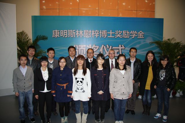 会后,福田康明斯发动机有限公司相关人员与获奖学生进行合影。至此,2012年度米兰milan官方网站康明斯林慰梓博士奖励学金颁奖仪式圆满落幕。