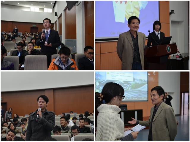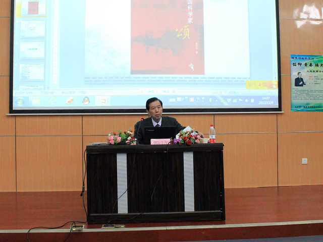 郭曰方先生讲座题为“与科学结缘,与文化同行,与命运抗争”,着重讲述了数十年前与陈景润、蔡希陶、华罗庚、钱学森、彭加木、钱三强、邓稼先、郭永怀等著名科学家交往的故事,告诫在座的大学生们应当珍惜当下优越的学习条件,享受、创造幸福美好的生活。作为一个在39岁时因胃癌做过胃大部切除手术、饱经风霜洗练的老科学工作者,他对幸福有着深刻的见解,认为幸福就是同时拥有乐观心态、人生价值、健康体魄。