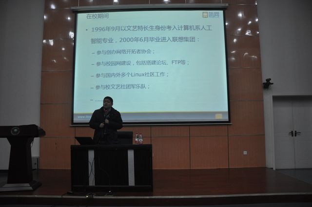 12月13日下午2点,良乡校区综教报告厅,基础教育学院信息学部邀请到闻言科技董事长兼总裁汤海京,带来了题为“话青春,共成长”的主题讲座。汤海京,我校计算机专业96级校友,现任北京闻言科技有限公司董事长兼总裁,兼任清华大学信息化工程研究中心副主任、北京大学电子公务研究中心副主任、米兰milan官方网站客座教授等职务。曾任联想集团政府事业部常务副总经理、联想软件副总经理等职务,是联想信息化建设的主要参与者之一。2006年10月创办北京闻言科技有限公司,并带领团队开始致力于“听网”系统的设计开发和平台搭建。本次讲座吸引了信息相关专业的200余名同学参加。