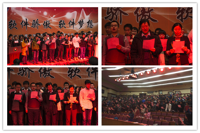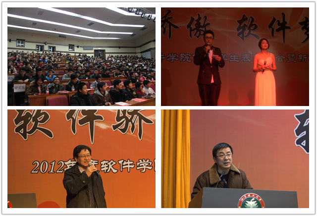 2012年12月29日晚18点30分,软件学院在中心教学楼报告厅隆重举行了2012年度“软件骄傲 软件梦想”优秀学生表彰大会暨新年晚会。教务处副处长曹峰梅老师,研究生院培养处副处长陈旵明老师,校团委副书记周明宇老师,学生工作处管理科科长马晓宁老师、软件学院分党委书记李波老师、院长丁刚毅老师、分团委书记陈杰浩老师、教学办公室刘姝老师、学院机关陈领起老师出席了大会,与会的还有各年级辅导员老师以及本科、研究生各年级的学生。大会由本科2010级学生刘勇搏、虞子轩主持。
