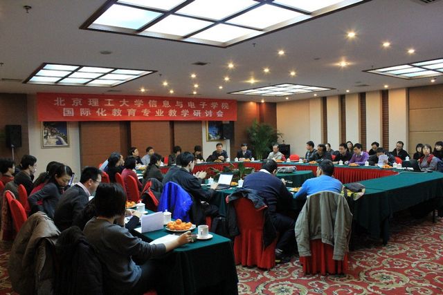 首先,薛正辉副院长总结了2012年信息与电子学院在国际化专业建设工作方面的进展情况,并通报了后续工作相关安排。专业责任教授刘大可就部分专业基础课教学大纲、学院国际化教学发展思路同与会领导、教师代表进行了交流探讨,刘家康教授介绍了“电子科学与技术”国际化专业2012版教学大纲专业课部分的基本内容和设置考虑。国际交流处副处长邢清清介绍了学校目前在教师、学生国际交流学习方面的主要政策。