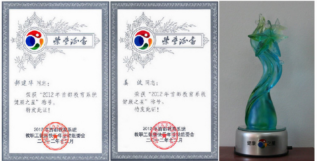 在2012年首都教育系统健康之星评比中,我校姜波、郝建华2位同志获得“2012年首都教育系统健康之星”。