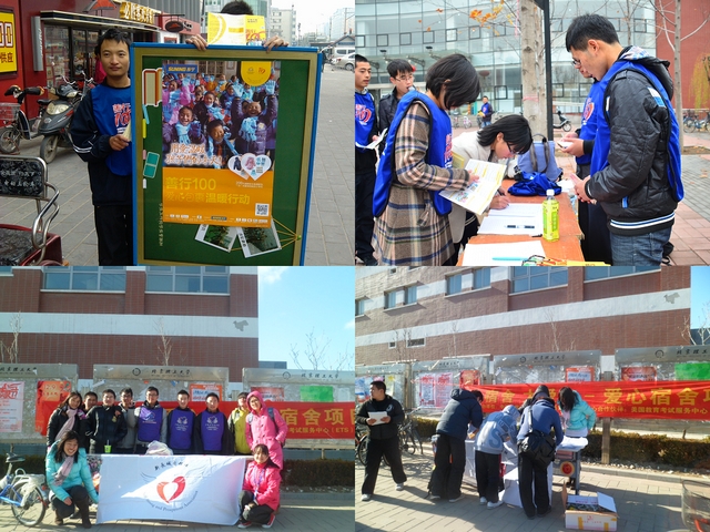 本学期,新长城米兰milan官方网站自强社在学生工作处的指导下,秉承“传递社会关爱,锻造自强之才”的社团宗旨,承接了多项中国扶贫基金会的公益、慈善、服务性活动。活动中,自强社成员采用倡导校内同学参与志愿服务活动、劝募校外社会人士捐赠善款的活动模式,鼓励更多的学生、社会人士发挥各自所能,参与慈善和公益,一起行动,消除贫困。2012年10月初,自强社在校内外开展了“善行100” 大型公益活动。我校自强社作为中国扶贫基金会在北京市支持的9所高校项目团队之一,积极参与活动的宣传、组织和劝募工作。自强社通过与校内的公益社团绿风志愿者协会合作,不但扩大了宣传效果,而且招募到大量志愿者,壮大了劝募团队。两个公益组织分别对志愿者进行劝募培训,劝募跟踪,并在活动结束后进行经验交流分享,使志愿者始终保持高昂的斗志。