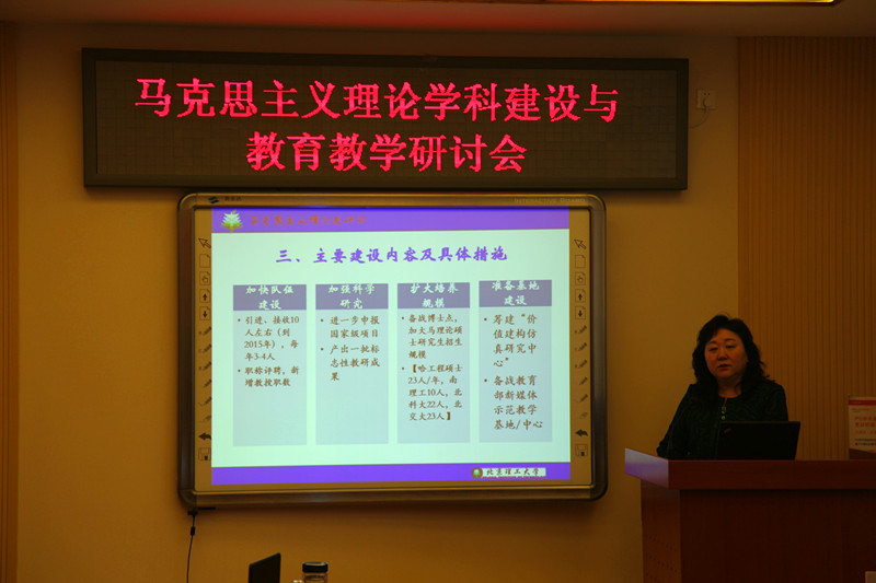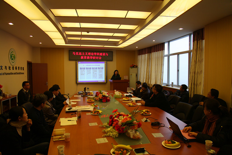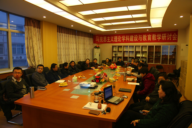 为贯彻落实国务院学位委员会《关于进一步加强高等学校马克思主义理论学科建设的意见》(学位〔2012〕17号),进一步加强马克思主义理论学科建设,为思想政治理论课提供有力支持,根据教育部社科司《关于在全国高校开展马克思主义理论学科建设情况调研工作的通知》(教社科司函〔2012〕255号),2013年1月23日,马克思主义理论教研部召开了“马克思主义理论学科建设暨思想政治理论课教学研讨会”。学校发展规划处处长李镇,研究生院常务副院长兼培养处处长盛新庆,学校发展规划处副处长王茹,教务处副处长曹峰梅等领导出席会议。马克思主义理论教研部主任张红峻、人文与社会科学学院院长李健,马克思主义理论教研部副主任李林英及马研部全体教师参加了本次研讨会。