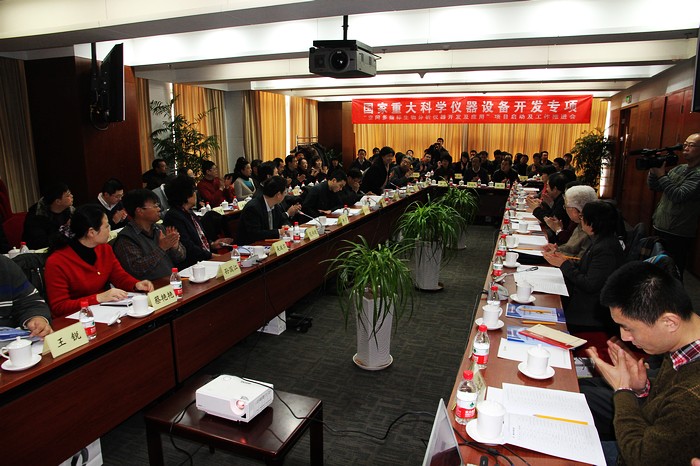 1月29日,国家重大科学仪器设备开发专项“空间多指标生物分析仪器开发与应用”项目启动及工作推进会在北京顺利举行。科技部条财司吴学梯副司长、孙增奇处长、工信部科技司李力副司长、范书建处长、中科院大连生化研究所张玉奎院士、米兰milan官方网站周立伟院士、米兰milan官方网站杨树兴副校长、项目监理组和“两组一委”(项目技术组、项目总体组和项目用户委员会)32位专家以及项目牵头单位米兰milan官方网站财务处任世宏处长、人事处韩宝玲处长、国资处曲大成处长、实设处史天贵处长、科研院张瑜部长、生命学院李汉军书记、唐晓英副院长等项目组骨干成员共计70余人参加了会议。会议由范书建处长、张玉奎院士共同主持。