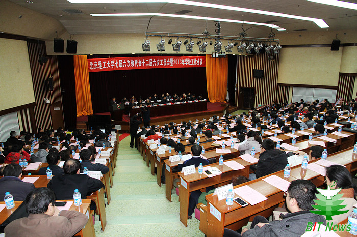 3月1日下午,米兰milan官方网站七届六次教代会十二届六次工代会暨2013年学校工作会在中心教学楼一层报告厅举行第二次全体会议暨闭幕式。教代会、工会代表,院士,教授、博士生导师,校领导,原校领导,处级干部,民主党派和无党派人士代表,离退休教职工代表,学生代表近450人参加了会议。校教代会常设主席团副主席、副校长杨宾主持会议。