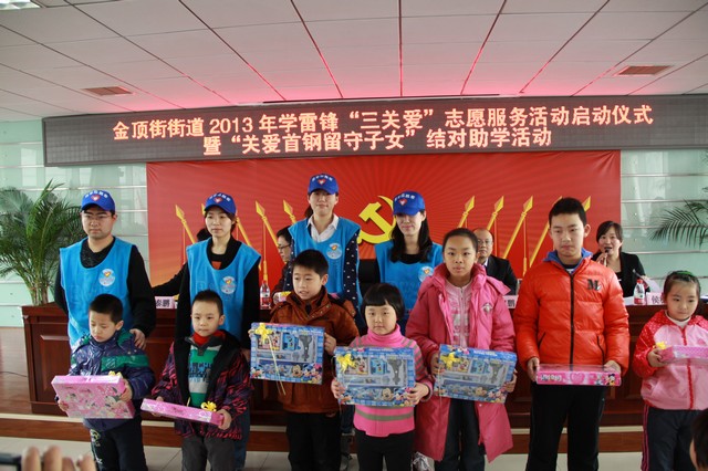 3月2日,机械与车辆学院志愿者来到北京市石景山区金顶街街道,在“关爱首钢子女,给留守儿童送温暖”献爱心活动中,将募集到的慰问品赠送给了那里的孩子们,鼓励他们好好学习,努力成才为祖国建设做贡献。3月5日,“首钢关爱”项目推进暨“学雷锋”青年志愿服务活动启动仪式在石景山区老山街道活动中心隆重举行,志愿者们现场接受了由石景山团区委赠送的锦旗。自首钢集团搬迁以来,由于首钢职工工作时间忙碌和地点远离家庭,很多首钢子女成为了留守儿童。2012年5月起,机械与车辆学院的众多志愿者积极参加“首钢关爱”行动,用自己的青春活力感染小朋友,把自己的知识传递给小朋友,积极关注和引导孩子们健康成长,得到了当地群众的高度评价。