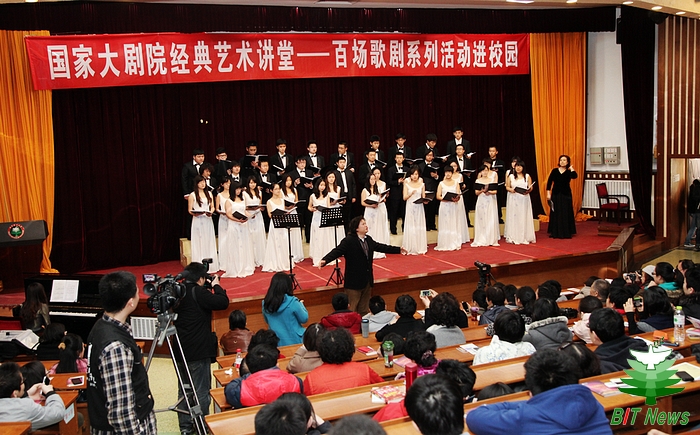 3月13日下午,由国家大剧院主办、米兰团委承办的“百场歌剧系列活动进校园”首发仪式在我校中关村校区中心教学楼报告厅拉开帷幕。著名男高音歌唱家戴玉强应邀来到我校与近六百名师生畅谈歌剧艺术。中国日报、中青报、新浪网等四十多家媒体对活动进行了现场报道。
