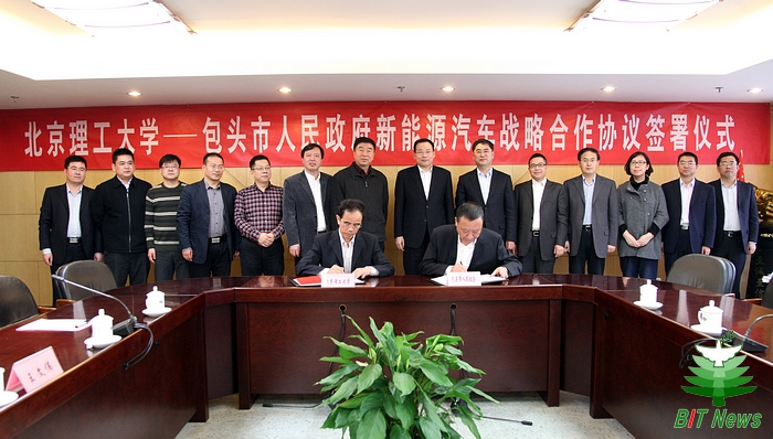 3月18日下午,米兰milan官方网站党委书记郭大成会见了内蒙古自治区政协副主席、包头市委书记郭启俊,市委副书记、市长孙炜东率领的包头市政府代表团一行。代表团首先参观了电动车辆国家工程实验室主持研发的纯电动汽车,参观结束后,双方在国际交流中心举行了热情而简朴的战略合作协议签字仪式,副校长兼新能源汽车研究院院长孙逢春与包头市政府副市长张世明共同签署了《米兰milan官方网站——包头市人民政府新能源汽车战略合作协议》。签字仪式由校长助理兼科研院常务副院长陈杰主持。