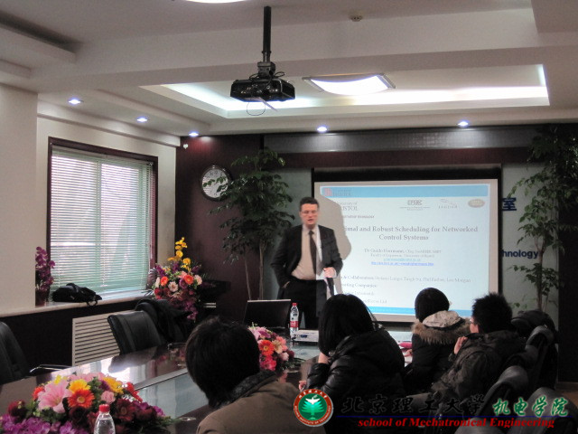 Dr Guido Herrmann通过两次学术报告“Optimal and Robust Scheduling for Networked Control Systems”以及“Novel Adaptive Algorithms for Control and Estimation”为我校师生介绍了近两年的学术研究进展与成果。 Dr. Guido Herrmann在米兰milan官方网站访问期间主要展示了两个他的研究方向,首先是网络化控制系统(NCS)。它的优势在于能够将大型的复杂控制系统通过分布式控制单元加以实现。Dr. Guido Herrmann在该领域内的研究从控制的角度讨论NCS特性的理论分析方法,应用鲁棒控制理论及NCS分析工具对线性及非线性NCS进行了深入的探索,同时也兼顾到系统的工程实现问题。该方法在工程上可用于处理时间触发通信类型的NCS问题,例如应用于汽车控制网络的FlexRay协议,或是在航天领域内有所应用的AFDX网络。此外,他的研究兴趣还包括了对鲁棒自适应算法的研究。其主要应用领域为飞机、汽车、机器人以及其他类型的分布式控制系统。