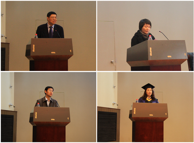 教师代表刘越教授发言,他用亲切平实的语言,语重心长地为毕业生们送上祝福,他希望毕业生们不要忘记自己在理工大学光电学院学习和生活的点点滴滴,用坚强的意志和广博的知识去创造成绩,带着感恩的心去回报母校,回报父母,回报社会,担当起建设祖国的大任,为社会发展贡献力量。