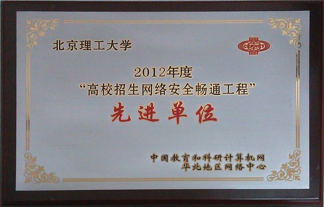 日前,我校获评中国教育科研网2012年“高校招生网络安全畅通工程”先进单位称号。
