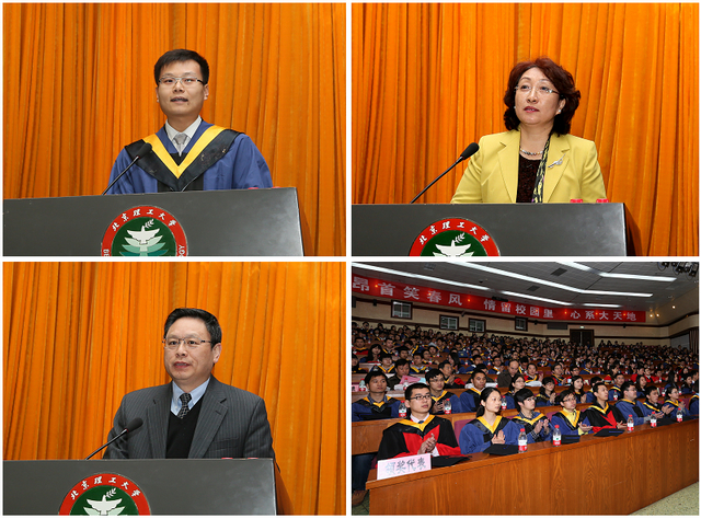 光电学院李艳秋教授代表研究生指导教师,将自己对学生的留恋和牵挂,化作感激和殷切期盼:感谢同学们为国家建设和米兰发展在教学和科研活动中做出的贡献;期盼同学们为了“中华民族伟大复兴”与“中国梦”的实现,努力进取、追求卓越,成为栋梁之才。希望同学们和母校、导师保持联系,常回家看看。