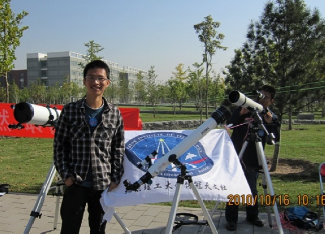 入学后,刘真畅怀着对天文的热爱,在大一时就与学长一起创办了天文社。起初天文社什么也没有,经过几年的努力目前已经拥有了9台望远镜,并且举办了很多天文观测活动。刘真畅对天空的渴望并没有停留在兴趣爱好上,而是转化为了他专业学习和科研创新的动力。