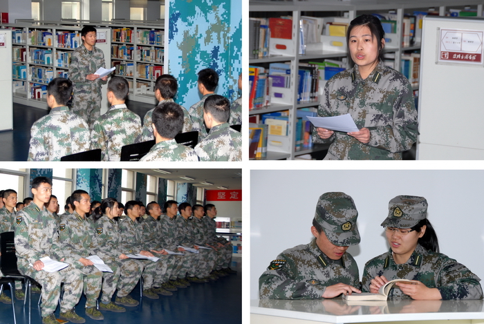 张翔等十名同学分别以《海图腾之中国航母》、《祖国不会忘记>》、《历史的震撼》、《浅谈基层干部如何带兵》、《关于部队基层文书的心得体会》、《红日》、《狼图腾》等题目进行了演讲,与大家分享了他们的读书心得,表达了这些未来人民军官心系国防,知识报国的强军梦想和军旅情怀。