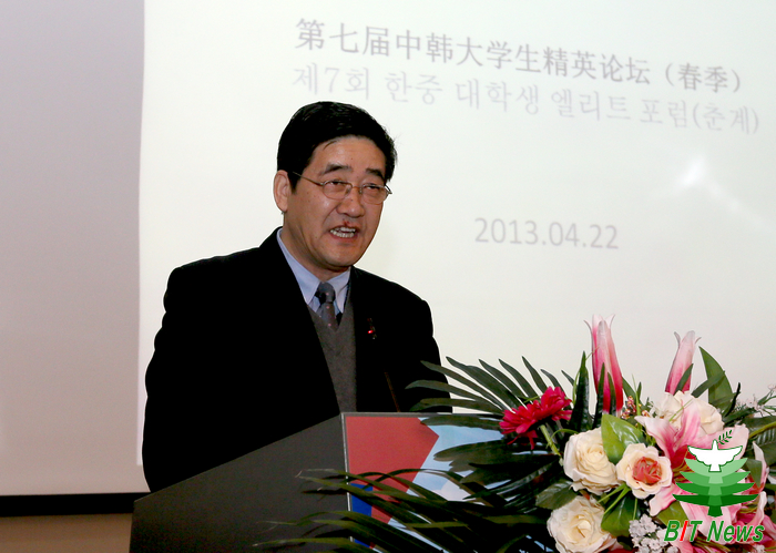 4月22日下午,由共青团北京市委员会、韩国韩中文化青少年协会(未来林)主办,学校团委、北京市学生联合会承办的第七届中韩大学生精英论坛在中关村校区7号楼报告厅成功举办。该论坛作为中韩大学生志愿者交流营的重要组成部分,至今已成功举办了六届。中韩双方领导、专家以及200余名优秀大学生代表出席了本届精英论坛。