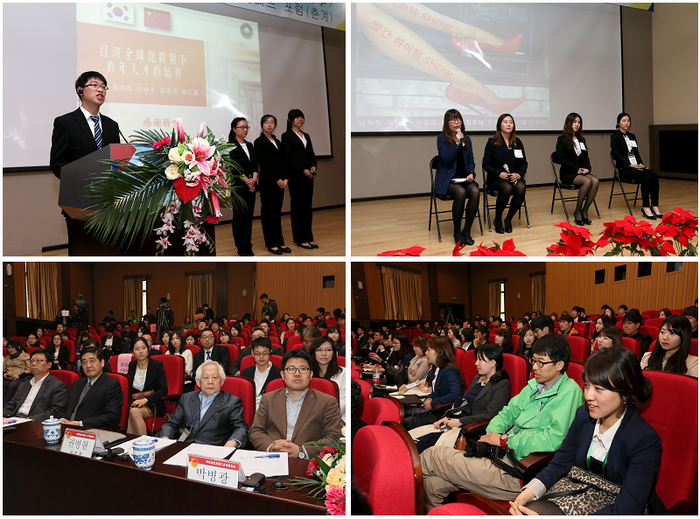 本届精英论坛由5个小组构成,其中中韩双方学生各两组,由中国学生与韩国学生组成的中韩混编组一组。论坛上,各组分别围绕“青年人才培养”、“新能源运用”、“中韩文化交流”三个主题进行了论文陈述报告。在本届论坛上,以中韩青年不同视角关注同一热点问题产生的思想火花尤其引人注目。在论文陈述中,无论是韩方代表阐述“韩中青年就业结婚比较研究”、“可再生能源使用情况调查”,还是中方代表阐述“经济全球化背景下青年人才的培养”、“以青年视角关注新能源”,以及中韩混编组在阐述“中韩两国的文化产业交流与其相互推广和发展”时,同学们都紧扣青年在关注两国热点问题、促进两国文化交流发展中应发挥积极作用这一主题,通过深入交流不仅增进对彼此文化的认同感,而且结合自身实际提出主张、表达建议,从而培养长远眼光,增强对发展两国长期稳定关系的使命感。